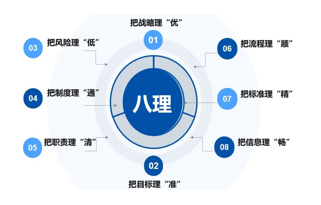 1.管住“人”的举动管理最核心的就是对一个人的管理。管人一定要管什么?——思想和行为。人管理最后要严格落实在人思想和行为上,思维决定个人行为,思维决定作为。人思想和行为直接影响到工作效能和工作效率。个人行为遭受观念、专业技能规范的制约。因此,一定要通过职位专业素质、标准化管理、技术培训、查验、具体指导、考评、激励沟通等方法标准和约束人的认知。 2.管住“物”状态物情况分三个方面,一是存有情况、二是安全防护情况、三是账务情况。中国目前许多企业持续推起精益生产成本费观念的学习培训,在其中一个重要原因就是想要顺利实施“物情况”管理,从源头上清除各种消耗。我们应需从制度建设、信息化建设、可视化管理、内部结构审查等多个方面提升物管理。 3.管住“事”得到的结果。企业管理环节中,更为常见的一便是PDCA闭环控制管理法,所有事情应遵循“计划、执行、查验、处理”的一体化闭环控制。管住“事情的结论”,基本而言,便是搞好执行能力,保证“五有五必有”(有工作必定目标、有目标必定计划方案、有计划方案必有策计划、有计划必定查验、有查验必定结论)。在管理过程中,秉着四不放过和PDCA立场的与此同时,擅于运用先进的管理专用工具(如防错改进、QC、A3、8D汇报、审批点评)等方式搞好“事”的管理。 4.管住“钱”效率钱高效率主要体现在两个方面,一是钱要用于该使用的地区。着急用钱的区域必须得评定审查,用掉是多少不是事,花的值不值得才是重点,避免花钱如流水导致不必要的浪费。二是塞住钱的漏洞。企业得有明确的申请流程及权限管理、从企业资金预算管理、采购管理系统、物流管理系统等多个方面必须得有制衡机制、内部控制审计、会计监督,提升“钱”使用和监管管理。 03 管理过程的“八理” 一个组织或团队,应对“人、事、物、资、时、效”等管理因素,要理的物品非常多,各个阶段盘根错节,那到底该理什么,做为管理者抓得住根基,不然那你就是累坏也理不太清楚,搞不出成效。